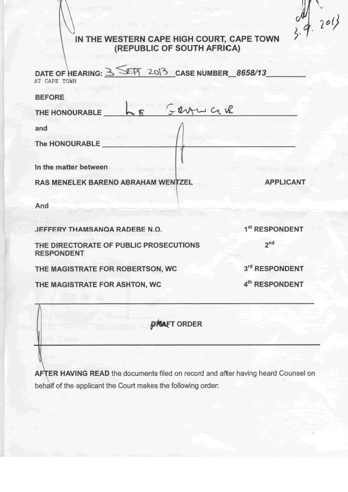 In the Cape Town High Court on Tuesday 3rd September, dagga legalisation in South Africa got a further boost when the two dagga prosecutions of a member of the Rastafarian religion, Ras Menelek Barend Wentzel of Robertson, were ordered postponed in the lower courts in order to allow Wentzel to summons the state to scientifically justify the prohibition and to question the constitutionality of the law. Wentzel's legal papers and the application were facilitated by the Dagga Party of South Africa. Read more